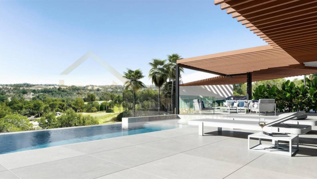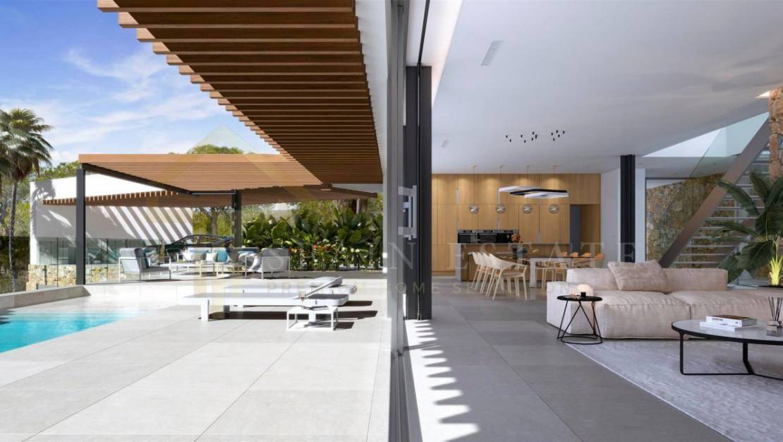 Es verfügt über eine durchsichtige Küche, ein Esszimmer, ein Wohnzimmer und ein Schlafzimmer im Erdgeschoss sowie eine große überdachte Terrasse und einen Pool. Die deckenhohen Fenster bieten einen spektakulären freien Blick auf den Golfplatz.