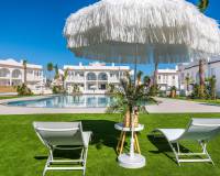 Wohngebäude bestehend aus Wohnungen auf 2 Etagen: Erdgeschoss mit privatem Garten und erster Stock mit privater Dachterrasse. Privates Wohnhaus, eingezäunt mit Grünflächen und einem Swimmingpool (im Studium).