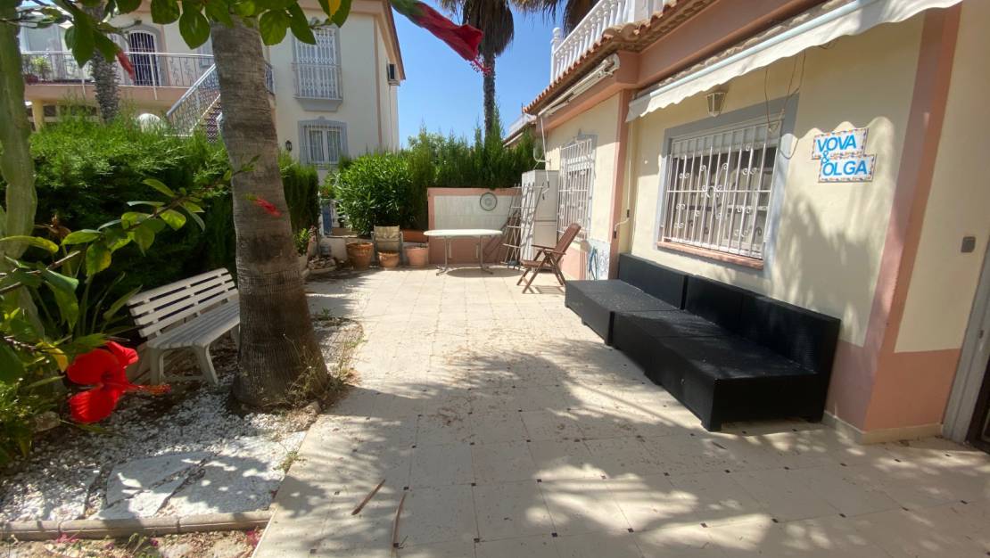 Das Haus besteht aus einem großen Wohnzimmer mit voll ausgestatteter Küche, 3 Schlafzimmern mit Ankleideraum, 2 Badezimmern, einem großen Garten am Eingang des Bungalows und einer gemeinsamen Terrasse auf der Rückseite.