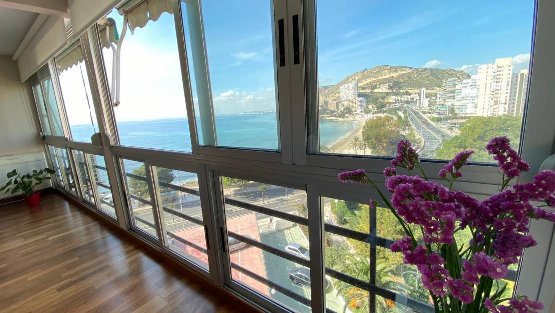 Diese beeindruckende Wohnung befindet sich im sechsten Stock eines Gebäudes in einer privilegierten Gegend von Alicante, direkt am Strand von Albufereta.