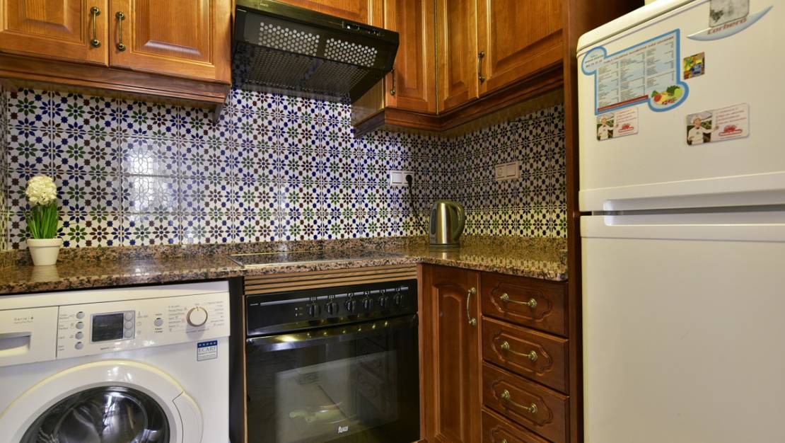 Die Wohnung hat eine bebaute Fläche von 84 qm im Wohnzimmer verteilt, möblierte und ausgestattete Küche mit Geräten, 2 Doppelschlafzimmer, 2 Badezimmer und schöne Terrasse.