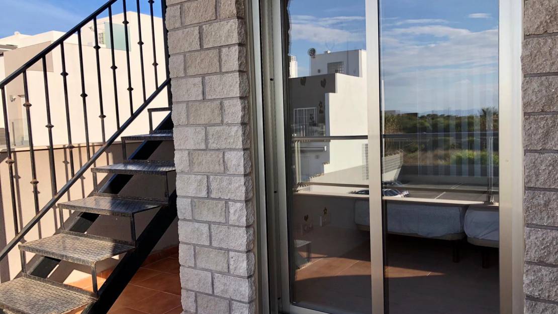 Dieses Haus zur Miete befindet sich in einer Wohnanlage mit Gemeinschaftspool in Aguas Nuevas - Sektor 25 in Torrevieja.