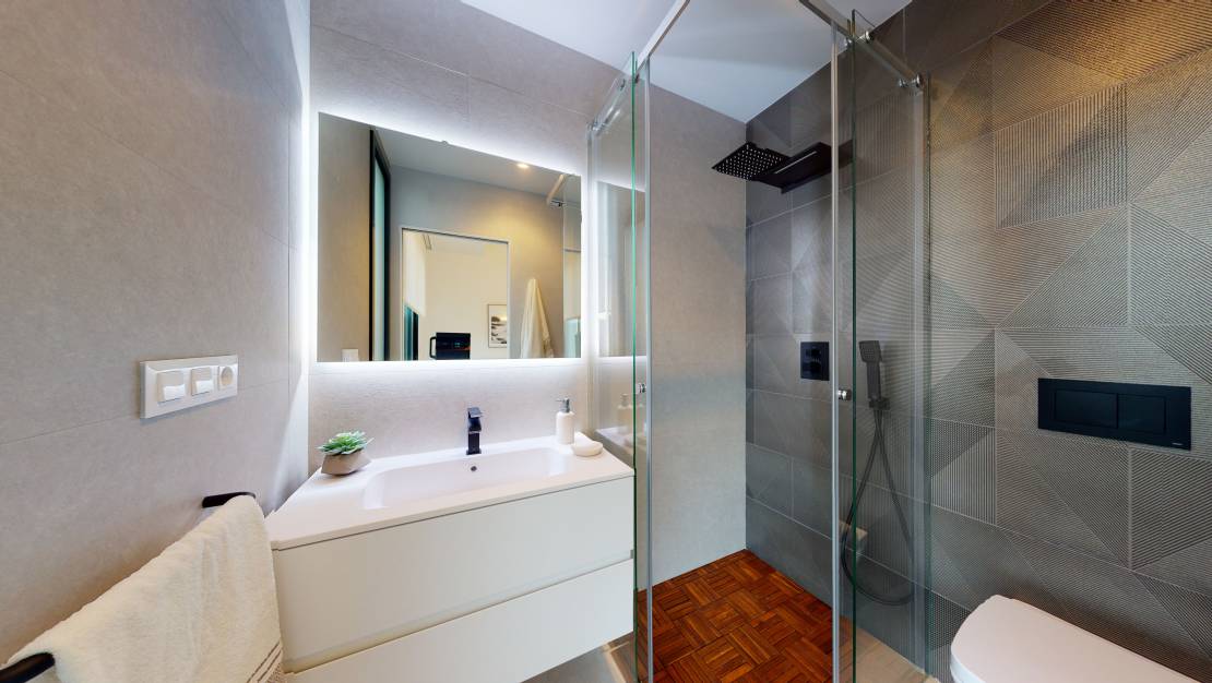 Erdgeschosswohnung mit 140 qm verteilt auf großes und helles Wohnzimmer mit offener Küche, 3 Doppelschlafzimmern, 3 Bädern und Raten-Toilette.