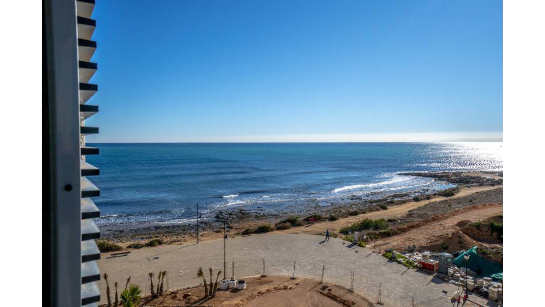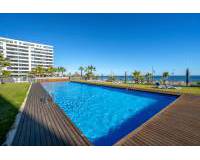 Apartment im exklusiven Komplex Panorama Mar in Punta Prima, Torrevieja. Die Residenz besteht aus großzügigen Gemeinschaftsbereichen, 3 Gemeinschaftspools (1 Infinity und 1 für Kinder), Spielplatz für Kinder, Tiefgarage, Abstellraum und privatem 24-Stunden-Sicherheitsdienst.
