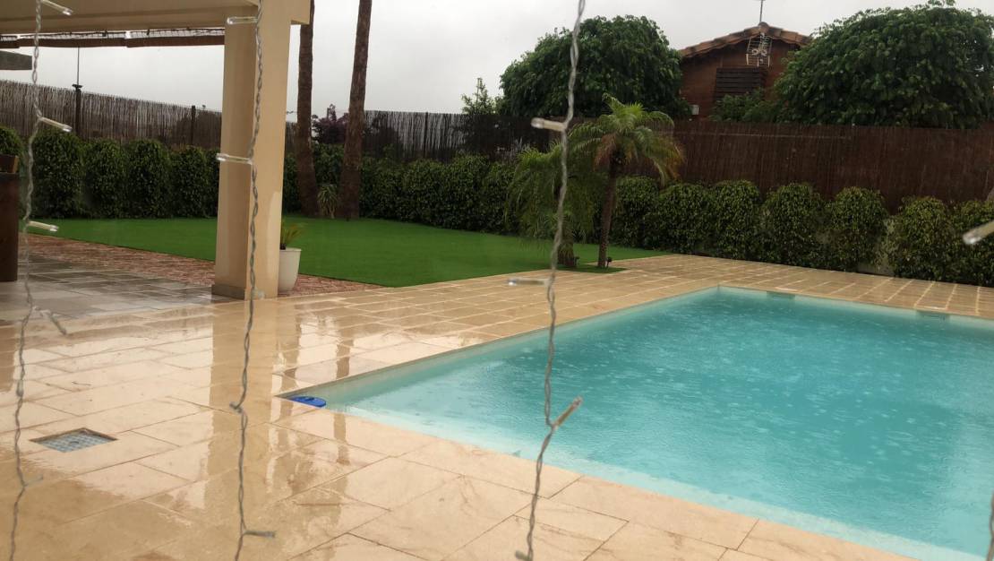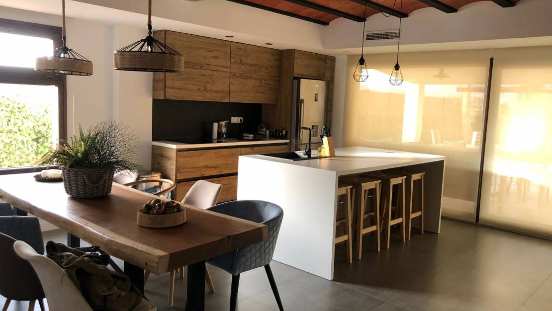 Unglaubliche Neubau-Luxusvilla in Aspe mit privatem Pool und großem Garten mit Grill zu vermieten. Das Haus erstreckt sich über zwei Etagen.