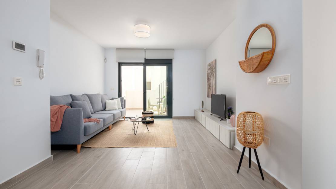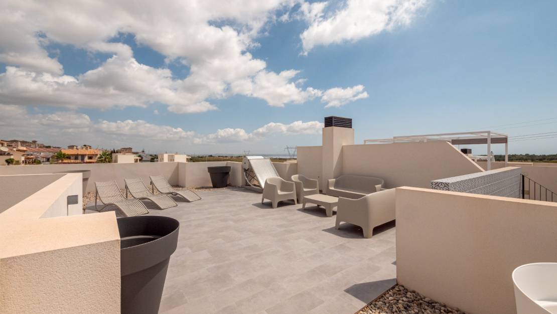 Premium-Apartmentkomplex mit Solarium zum Verkauf in San Miguel de Salinas, in der Wohngegend La Canada - Costa Blanca South. Die Häuser zeichnen sich durch ihr exklusives zeitgenössisches Design kombiniert mit traditionellen Elementen und mit Charakter aus .