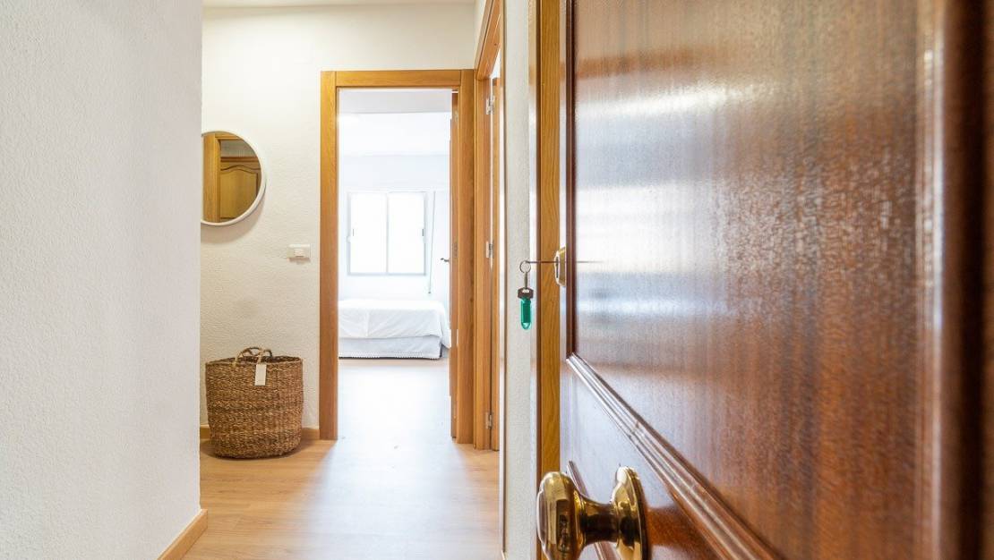 Das Haus verfügt über ein Wohnzimmer, eine separate Küche mit Hauswirtschaftsraum, zwei Schlafzimmer und ein Badezimmer mit integrierter Dusche. Das Gebäude verfügt über einen Gemeinschaftspool und einen Aufzug, ist jedoch nicht für Personen mit eingeschränkter Mobilität geeignet, da sich zwischen dem Portal und dem Aufzug Stufen befinden.