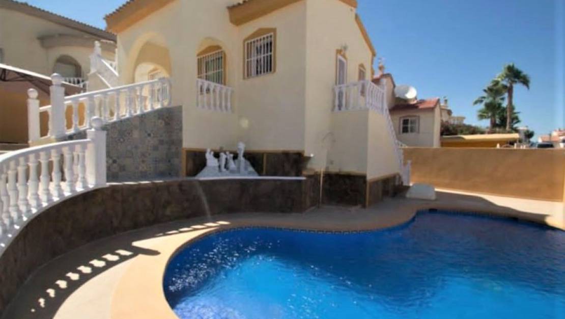 Freistehende Villa aufgeteilt in: großes Wohn-Esszimmer, separate Küche, 3 Doppelschlafzimmer mit Einbauschränken und 2 Badezimmer (beide mit Dusche).