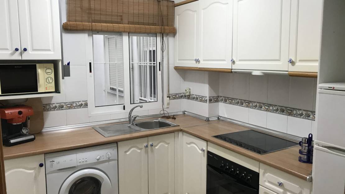 Komplett möblierte Wohnung zur Miete in der Calle de Almudena Torrevieja, Alicante. Die Wohnung verfügt über 3 Schlafzimmer, von denen eines als Arbeitszimmer genutzt wird, das andere über ein Doppelbett mit Ankleide und ein 180-Meter-Einzelbett sowie einen offenen Raum. Balkon. Hafen von Orihuela. Zwei Badezimmer, eines mit Innenbadewanne und das andere mit Außendusche. Voll ausgestattete und ausgestattete elektrische Küche mit der Möglichkeit, Küchenutensilien und Kleingeräte auf Wunsch des Mieters aufzubewahren. Von der Küche aus hat man Zugang zur Galerie. Der Speisesaal wurde nach der Hinzufügung eines lokalen Raumes hinzugefügt, der ursprünglich in der Fabrik gebaut wurde. Zugang zur hellen Terrasse an der Ecke Calle Caballero de Rodas und Calle Orihuela.