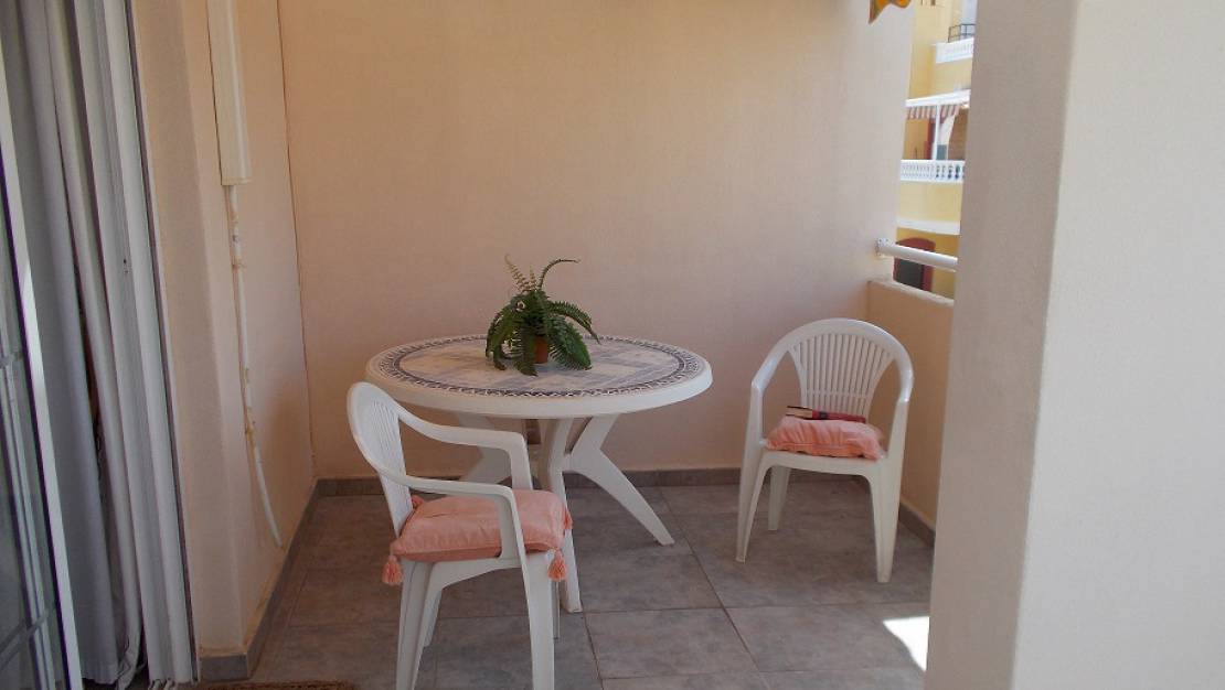Die Wohnung verfügt über 2 Schlafzimmer. Doppelzimmer mit Einbauschränken, Wohnzimmer, Bad und separater Küche. Alle Zimmer sind nach außen und öffnen sich zur Terrasse. Es ist möbliert und ausgestattet, mit Klimaanlage (warm/kalt), bezugsfertig.