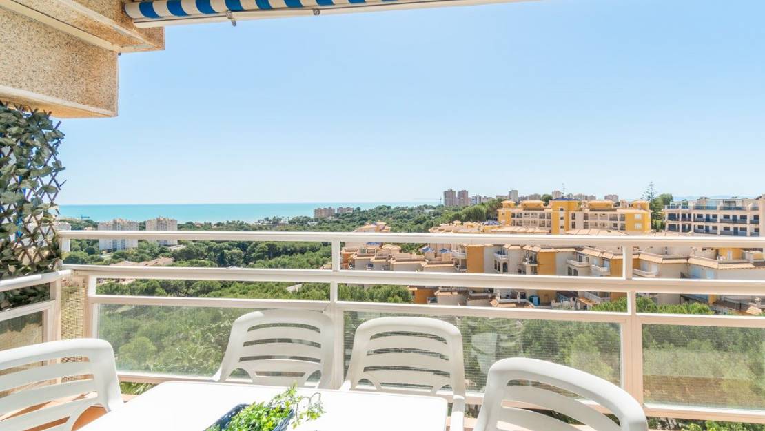 Spektakuläre Ausblicke auf das Meer und die Sierra de Campoamor (Orihuela Costa) Es befindet sich in einer Urbanisation mit allen Dienstleistungen in der Nähe, Supermärkten, typischen Restaurants in der Umgebung, dem Real Club Náutico de Campoamor, ganz in der Nähe der nationalen Bushaltestelle und etwa 850 Meter entfernt vom Strand entfernt, perfekt, um das ganze Jahr über zu leben und als Investition für Ferienvermietungen. Die Urbanisation verfügt über einen Gemeinschaftspool, schöne Grünflächen sowohl privat als auch in der Umgebung, 2 Tennisplätze und einen sozialen Bereich für Nachbarn. Das Apartment befindet sich im 8. Stock, sodass Sie vom Balkon aus eine unglaubliche Aussicht auf das Meer und von den Zimmern aus die gesamte Orihuela Costa-Bergkette genießen können. Es verfügt über ein geräumiges Wohn-Esszimmer mit Zugang zum Balkon, 2 Doppelschlafzimmer, eines davon mit eigenem Bad, 2 Badezimmer, eine Garage im Untergeschoss und einen im Preis inbegriffenen Abstellraum. Das Haus wird mit Möbeln und Geräten geliefert. Bleiben Sie nicht im Zweifel, buchen Sie einen Besuch. Summe - 144 € Wohnung / 39 € Abstellraum und Garage Jährlich. Gemeinschaft -916 € Jährlich.
