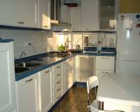 Obergeschoss: 2 Schlafzimmer, großes Wohn-Esszimmer, Badezimmer mit Dusche, komplett eingerichtete Küche, offene Terrasse, Klimaanlage und TV.
