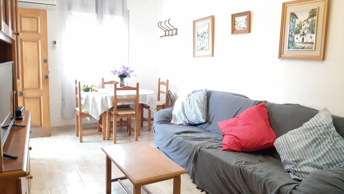 Große Wohnung in Strandnähe zum Verkauf in Torrevieja. Das Hotel liegt in der Gegend von Playa de los Locos , Torrevieja. Die Wohnung hat eine bebaute Fläche von 59 qm im Wohnzimmer verteilt, Küche möbliert und mit Geräten ausgestattet, 2 Schlafzimmer mit Doppelbett und 1 Badezimmer .