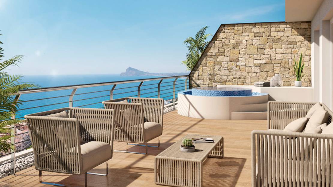 Neubau Wohnung im Erdgeschoss mit Meerblick in Mascarat, Altea.