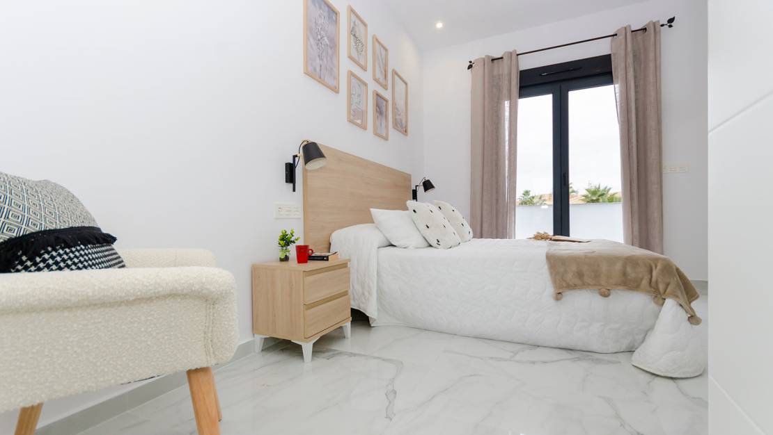 Das Haus bietet einen hellen Wohn- und Essbereich mit offener, voll ausgestatteter Küche, drei geräumige Schlafzimmer, drei vollständige Badezimmer und hochwertige Ausstattungen. Die funktionale Raumaufteilung garantiert Komfort und Privatsphäre, während große Glasfronten jeden Raum mit natürlichem Licht durchfluten. Im Außenbereich lädt ein privater Garten mit eigener Schwimmbad zum Entspannen, Feiern oder einfach zum Genießen des mediterranen Lebensstils ein.