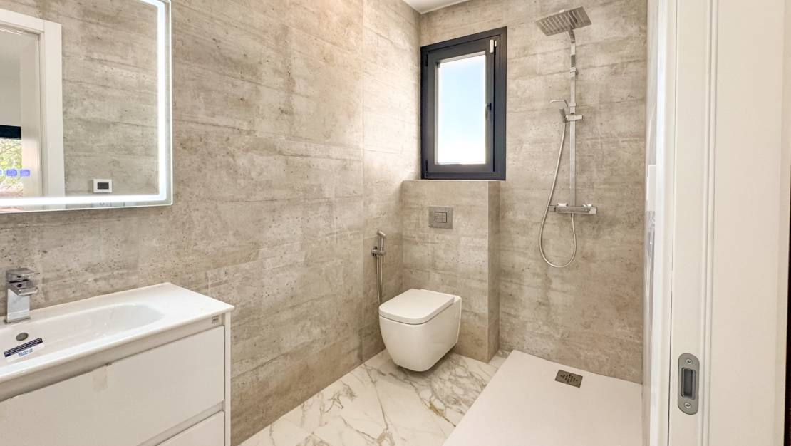 Das Anwesen bietet 337 m² Wohnfläche, verteilt auf ein Erdgeschoss und ein Untergeschoss. Es verfügt über vier Schlafzimmer , fünf Badezimmer plus ein Gäste-WC sowie großzügige, mit hochwertigen Materialien ausgestattete Innenräume. Zur Ausstattung gehören eine zentrale Klimaanlage mit Zonenregelung, eine Wärmepumpe, energiesparende LED-Beleuchtung, Einbauschränke, Schreinerarbeiten und komplett ausgestattete Badezimmer mit Duschabtrennungen, Möbeln und Armaturen. Die Küche ist mit allen notwendigen Elektrogeräten ausgestattet.