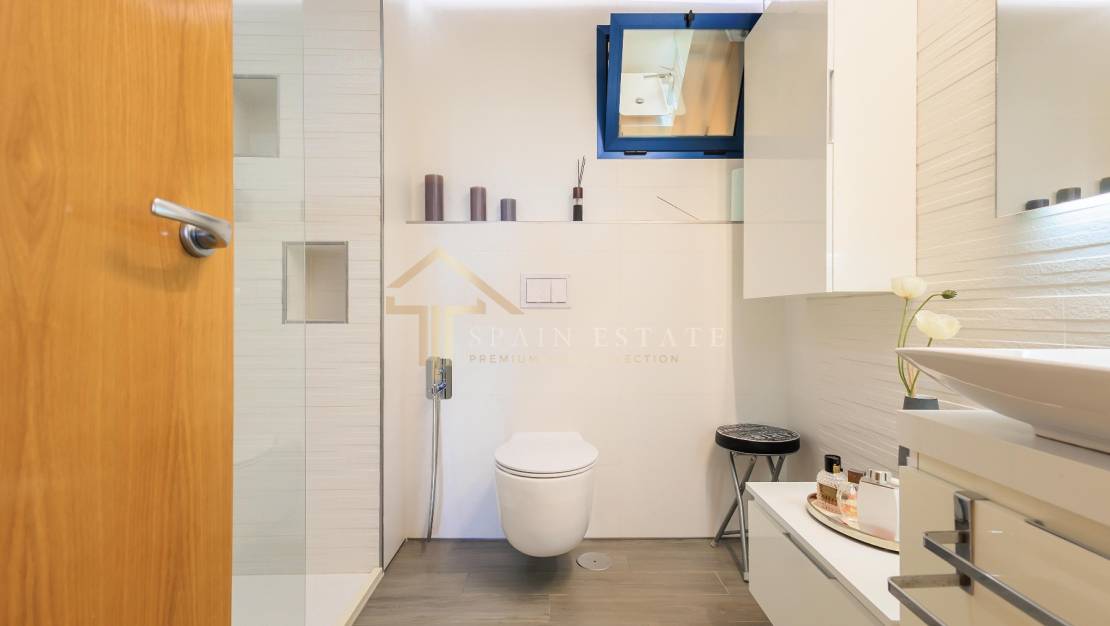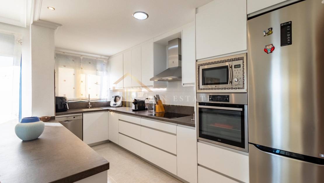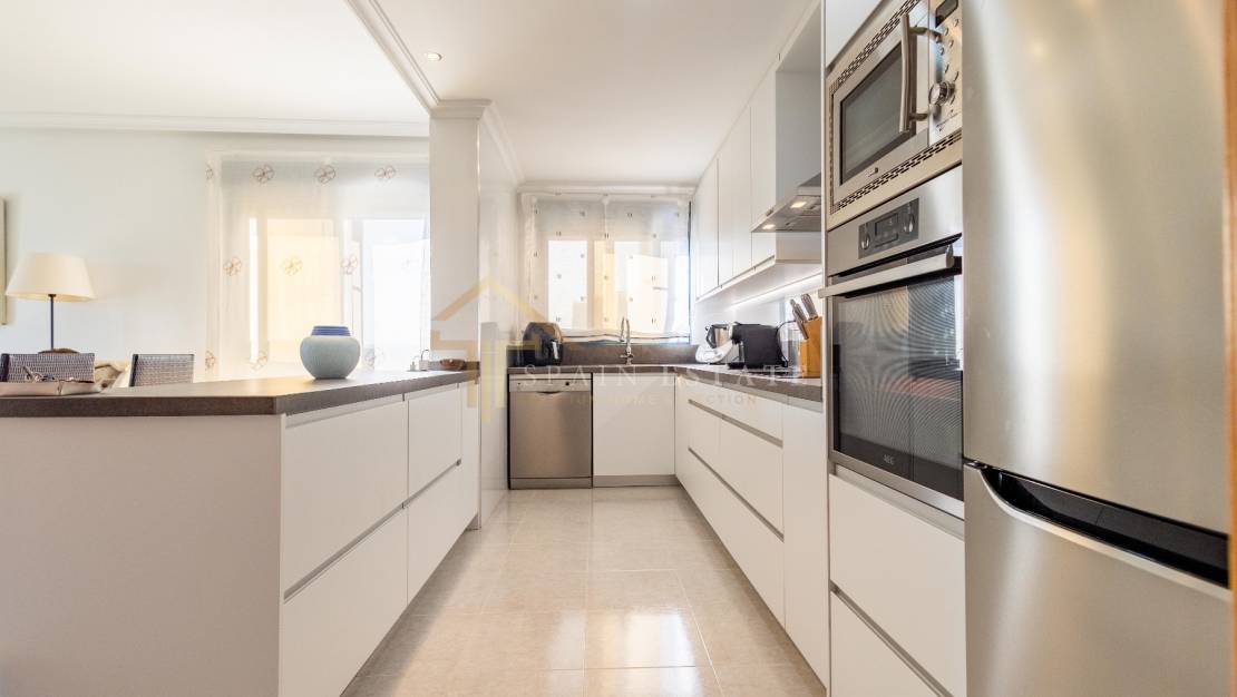 Diese Wohnung hat eine bebaute Fläche von 115 m² und ist in 2 Doppelschlafzimmer mit Einbauschränken und 2 Badezimmer aufgeteilt, eines mit eigenem Bad im Hauptschlafzimmer und das andere mit Zugang zu einer großen und geräumigen Terrasse. Abmessungen. Dank der Fenster genießen Sie das natürliche Licht im hellen Wohn-/Esszimmer mit offener und moderner Küche (hochwertige Schränke und neuwertige Geräte).