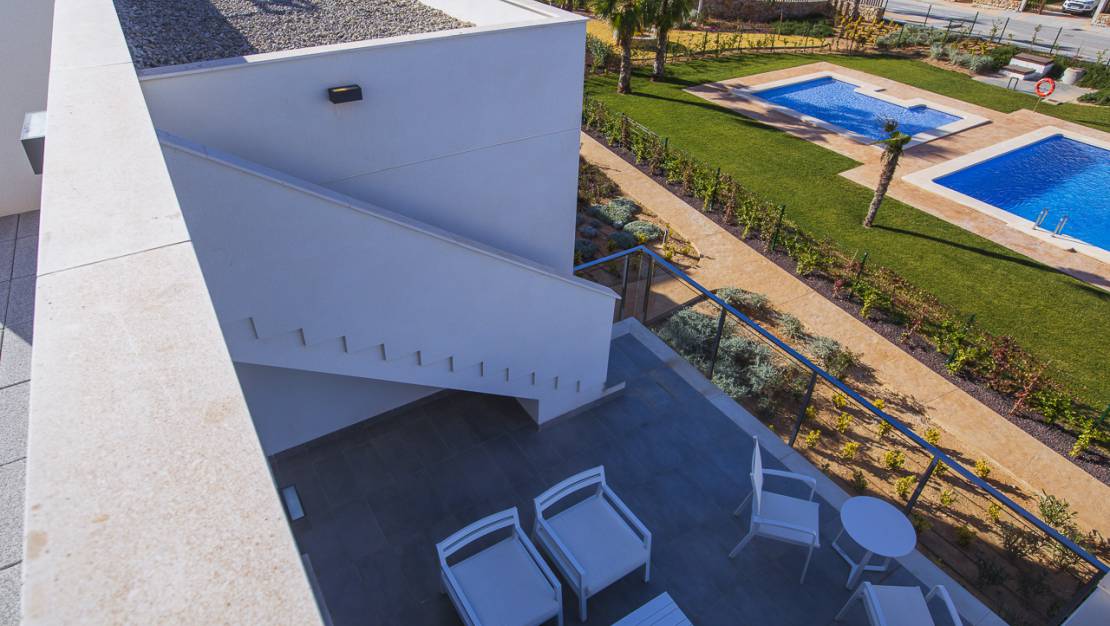 Vistabella Golf ist eine Wohnanlage mit Gemeinschaftspool und Grünflächen.