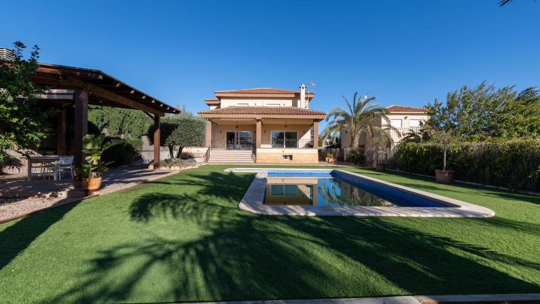 Wir präsentieren Ihnen diese prächtige, freistehende Einfamilienvilla auf einem 1.000 m² großen Privatgrundstück in einer der ruhigsten und begehrtesten Wohngegenden von Valverde Alto, Elche.