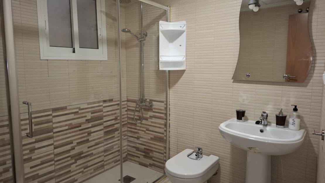 Wohnung mit 53 m² Wohnfläche, aufgeteilt in Wohnzimmer, offene Küche, Badezimmer (renoviert mit Dusche) und großes Schlafzimmer mit Zugang zu einem Innenhof mit Abstellraum (hat keine Terrasse zur Straße hin).