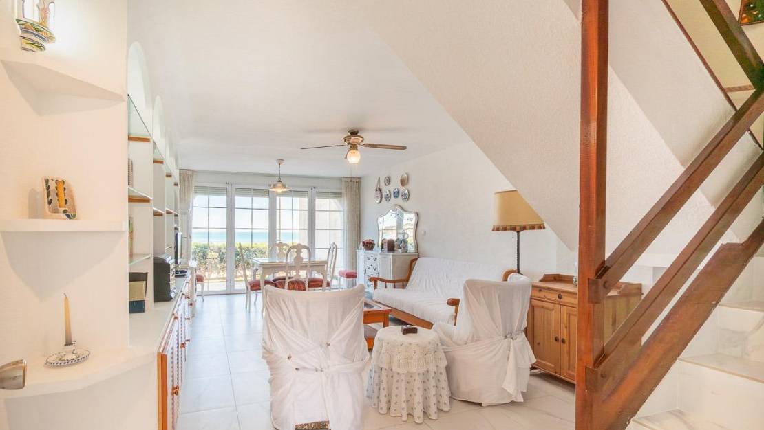 Entdecken Sie ein einzigartiges Juwel in erster Meereslinie in der prestigeträchtigen Gegend von Playa Flamenca, wo Immobilien aufgrund der privilegierten Lage an der Steilküste nur selten auf den Markt kommen.. . Dieses charmante Reihenhaus mit 90 m2 bebauter Fläche bietet einen unvergleichlichen Lebensstil am Mittelmeer. Im Erdgeschoss befindet sich ein großzügiges, lichtdurchflutetes Wohnzimmer mit einem großen Frontfenster und direktem Zugang zum Garten, von dem aus Sie den freien Blick und das beruhigende Rauschen des Meeres genießen können. Die Küche ist separat, funktional und ideal für den Alltag. Am Eingang befindet sich zudem ein gemütlicher privater Garten.. . Im Obergeschoss befinden sich zwei geräumige Doppelzimmer. Das Hauptschlafzimmer ist etwas ganz Besonderes: Genießen Sie den Meerblick direkt vom Bett aus. Diese Etage verfügt außerdem über ein komplett ausgestattetes Badezimmer.. . Die Immobilie gehört zu einer exklusiven Wohnanlage mit Gemeinschaftspool, ideal, um das mediterrane Klima das ganze Jahr über zu genießen. In dieser sehr gefragten Lage, in der Immobilien selten verfügbar sind, stellt dieses Haus eine einmalige Gelegenheit dar – sowohl als Hauptwohnsitz als auch als Investition.. . Hier zu leben bedeutet, einen Lebensstil direkt am Meer in einer der begehrtesten Lagen von Orihuela Costa zu genießen.. . Eine außergewöhnliche Immobilie, bei der das Meer Teil Ihres Zuhauses wird.. . Preis: 390.000 €. Steuern und Kaufnebenkosten nicht enthalten (gemäß geltender Vorschriften). Eine detaillierte Aufstellung der zusätzlichen Kosten wird vor der Reservierung bereitgestellt.