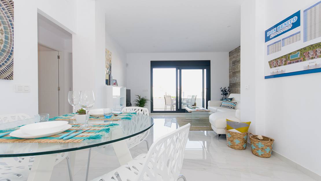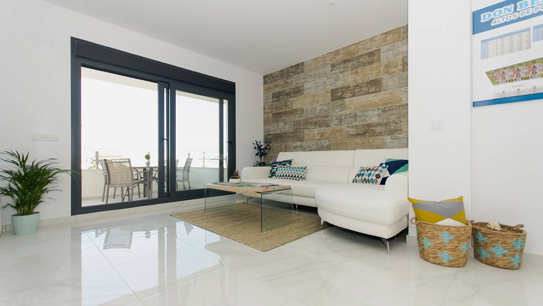Zusätzlich zu diesem modernen Penthouse in Polop verfügen wir über 20 Bungalows mit 2 und 3 Schlafzimmern im Erdgeschoss mit Garten oder auf dem Dachboden mit Solarium und 56 Doppelhaushälften mit 2 oder 3 Schlafzimmern, einem Eckgrundstück und ein Solarium.