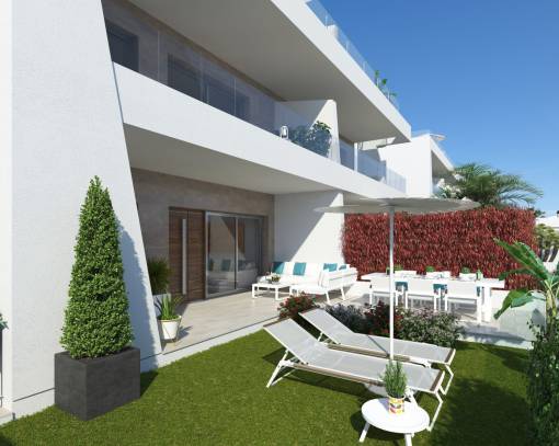 Sie werden unsere geräumigen und hellen Zimmer, die Schlafzimmer mit Einbauschränken, die voll möblierten Designerküchen und die modernsten Geräte lieben, ... Sie werden beeindruckt sein von der traumhaften Aussicht über das Mittelmeer, über das Salzige Lagunen oder über den schönen privaten Gärten der Wohnanlage mit Gemeinschaftspool und großen Solariumbereichen.