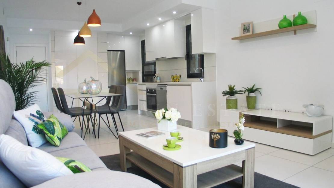 Piso en San Miguel de Salinas, 77 m. de superficie, 10 m2 de terraza, una habitación doble y una habitación sencilla, 2 baños, propiedad nueva, cocina equipada, orientación norte.