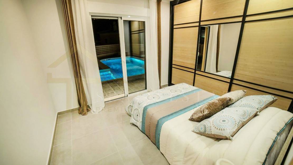 Consta de salón - cocina, 3 dormitorios con armarios empotrados, 2 baños y 1 aseo en parcela de unos 268 m2, con amplias terrazas, solárium y piscina privada.