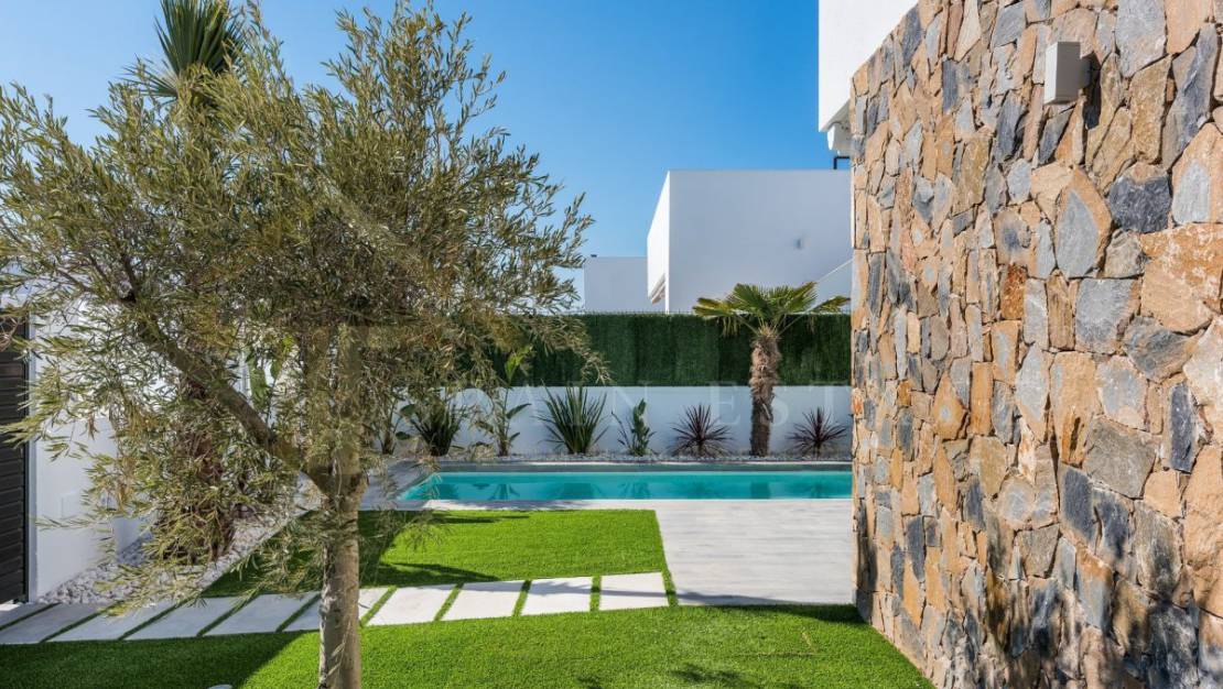 Villa en Pilar de la Horadada zona Centro, 96 m. de superficie, 200 m. superficie parcela, una habitación doble y 2 habitaciones sencillas, 2 baños, propiedad en obra nueva, orientación sureste.