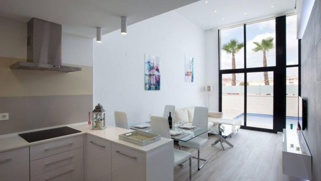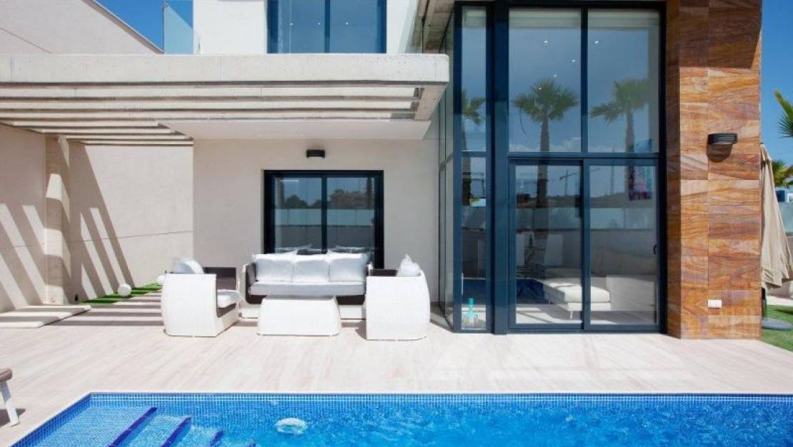 Complejo Residencial cerrado FASE I, compuesto por 31 villas independientes en un entorno privilegiado de la conocida zona de Cabo Roig. Las villas tienen 3 plantas, con sótano opcional, y desde su solárium se disfruta de unas excelentes vistas al mar. Su distribución es la siguiente: En la Planta Baja está la cocina, el salón-comedor (desde el que se accede directamente a la zona de la piscina privada), una habitación doble y un baño completo. En la Primera Planta encontramos 2 habitaciones con el baño en suite (una de ellas con acceso a un balcón), y también el acceso a la terraza desde la que se sube al enorme solárium de casi 40m2. Máximas calidades y el mejor entorno para disfrutar todo el año de la tranquilidad y excelente calidad de vida que proporciona la cercanía a la Dehesa de Campoamor y al Mar Mediterráneo. Ubicación próxima a las excelentes playas de la zona y al mayor centro comercial de Alicante “La Zenia Boulevard” con más de 150 tiendas y una amplia oferta de ocio y restauración. Muy próxima también a los 3 campos de golf de 18 hoyos del entorno (Las Ramblas, Campoamor y Villamartín). Precios desde 269.900 euros.