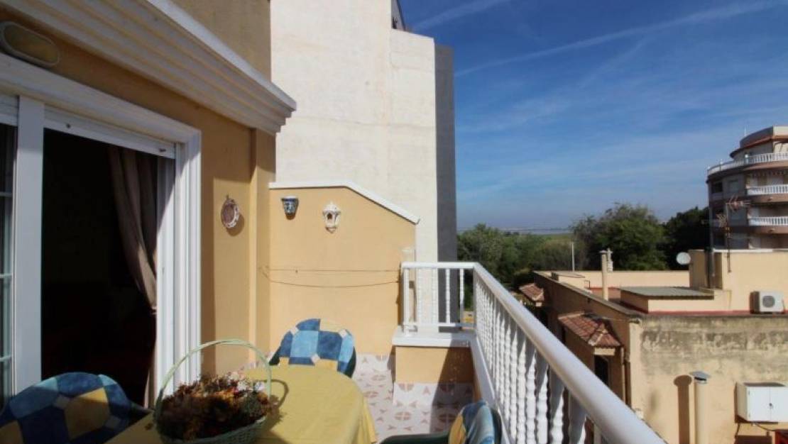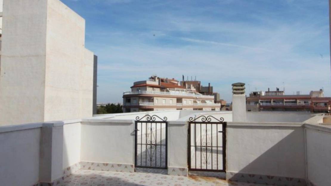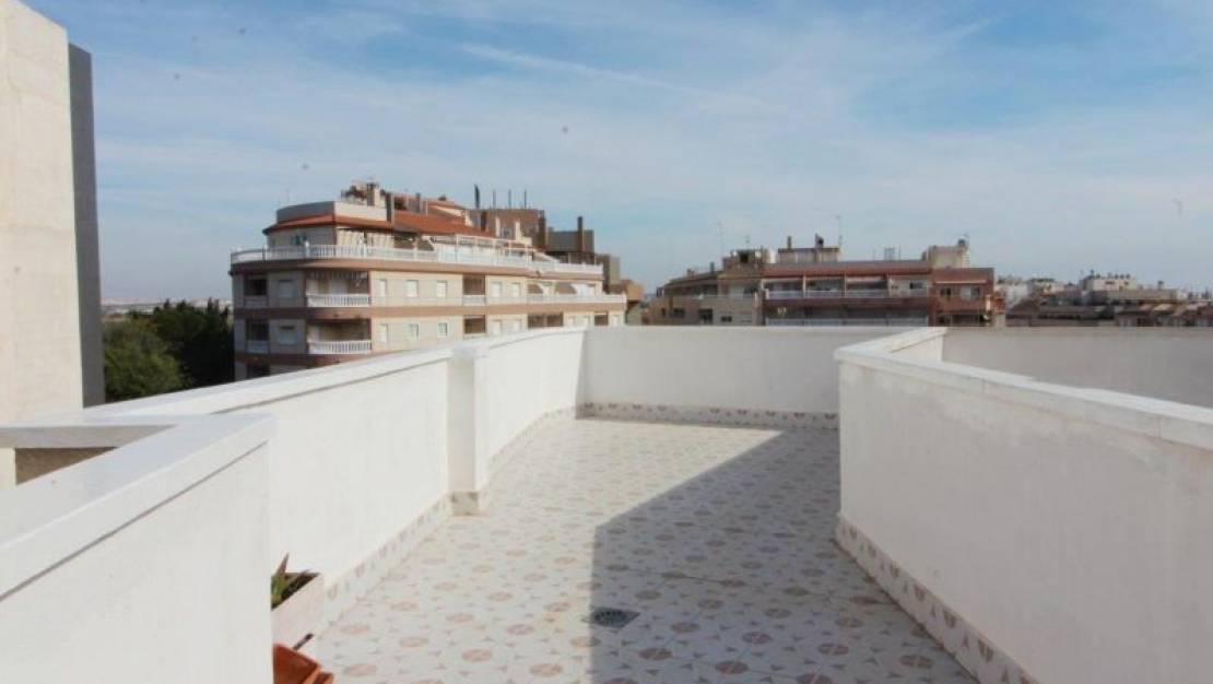 Amplio ático con orientación NORTE ubicado en el 3er piso de un edificio central en La Mata. La casa con 73,57 m² consta de 2 dormitorios, 1 baño, cocina equipada y una soleada terraza al aire libre. Aire acondicionado frío calor centralizado. Solarium privado de 27.70 m². Se entrega totalmente amueblado y equipado, según inventario. Edificio de reciente construcción. Su ubicación céntrica y tranquila lo hace rodeado de todos los servicios de la ciudad, como farmacia, supermercado, restaurantes, parada de autobús, etc. Garaje incluido. A 35 km del aeropuerto de Alicante, a 15 km de los mejores campos de golf ya solo 200 m (0.2 km) de las playas de La Mata. SUMA 223,55 euros / año. (Vivienda y garaje). COMUNIDAD € 70 / Trimestre (vivienda). COMUNIDAD 130 € / Semestre garaje.