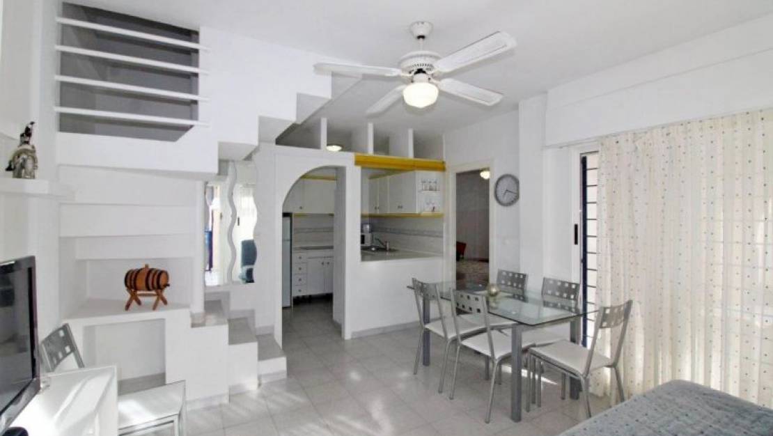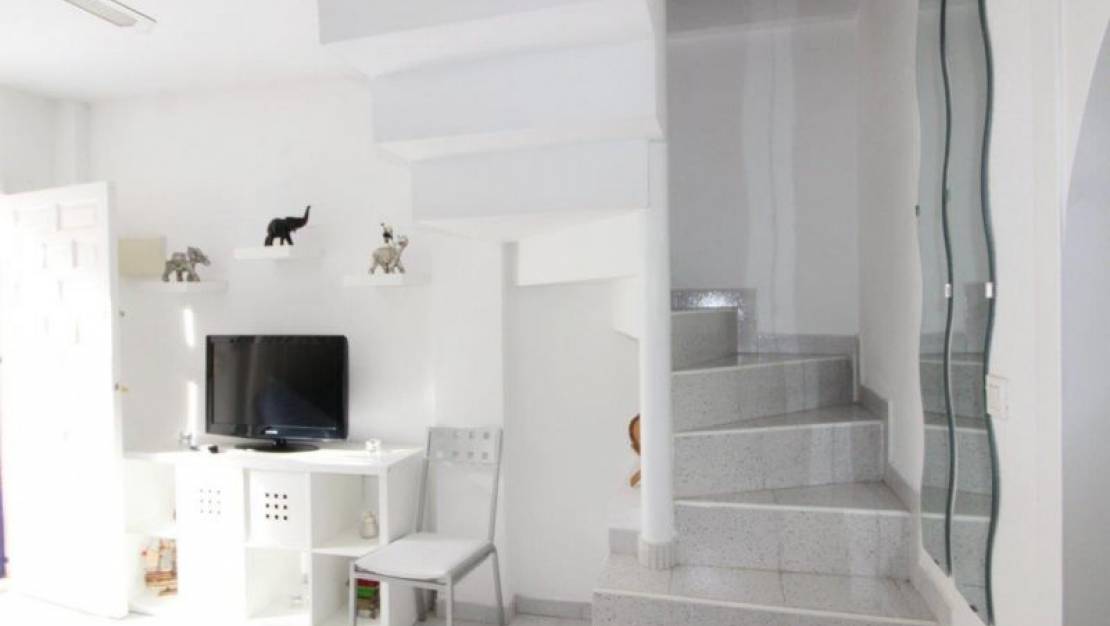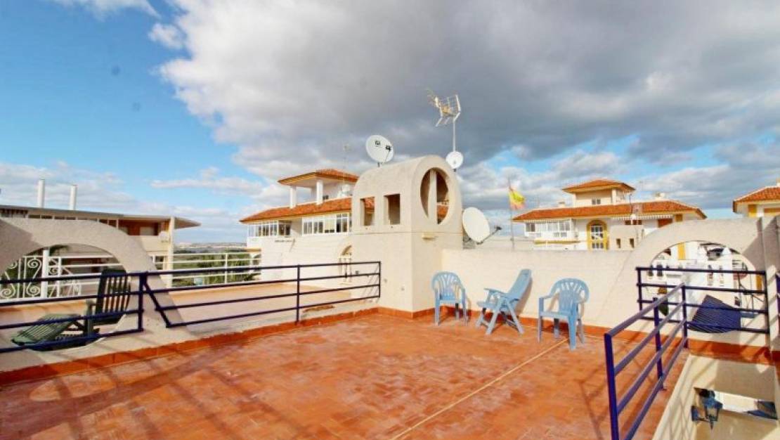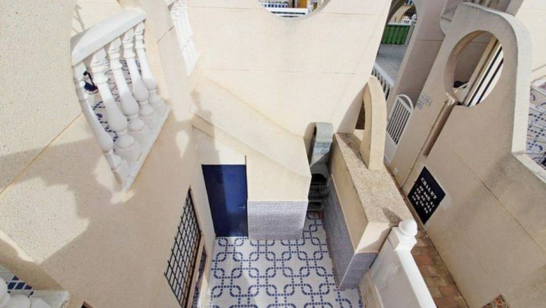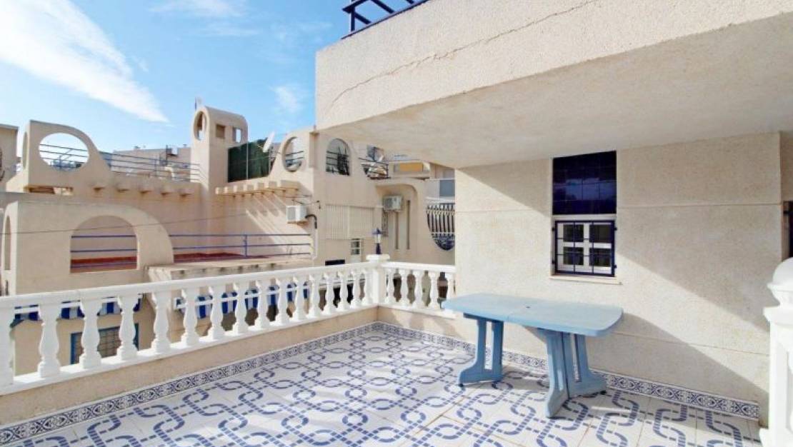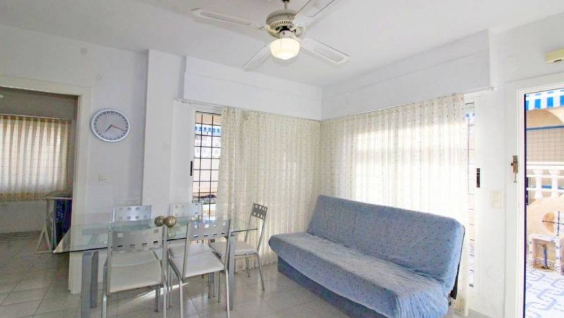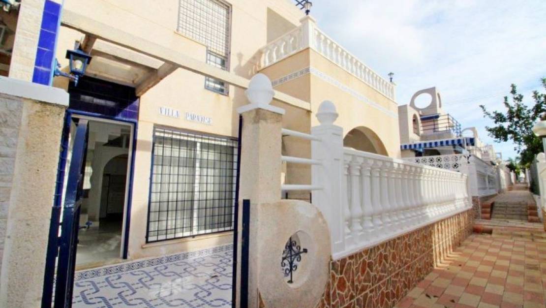 Soleado dúplex de esquina orientado al SUR ubicado en un residencial con piscina comunitaria a solo unos minutos de la playa de La Mata. La casa con una superficie de 70m2 tiene 3 dormitorios (uno en la planta baja), 2 baños completos, una cocina americana, un salón-comedor con acceso al jardín privado, un porche, una barbacoa y un trastero. Gran terraza en el primer piso y solarium privado en el segundo piso. Se entrega con muebles y electrodomésticos según inventario. Ubicación tranquila a un paso de los Centros Comerciales de Torrevieja, rodeado de servicios y tiendas: farmacia, supermercado, restaurantes, centro de salud, parada de autobús, etc.). SUMA 215 euros / año. Comunidad 35 € mes