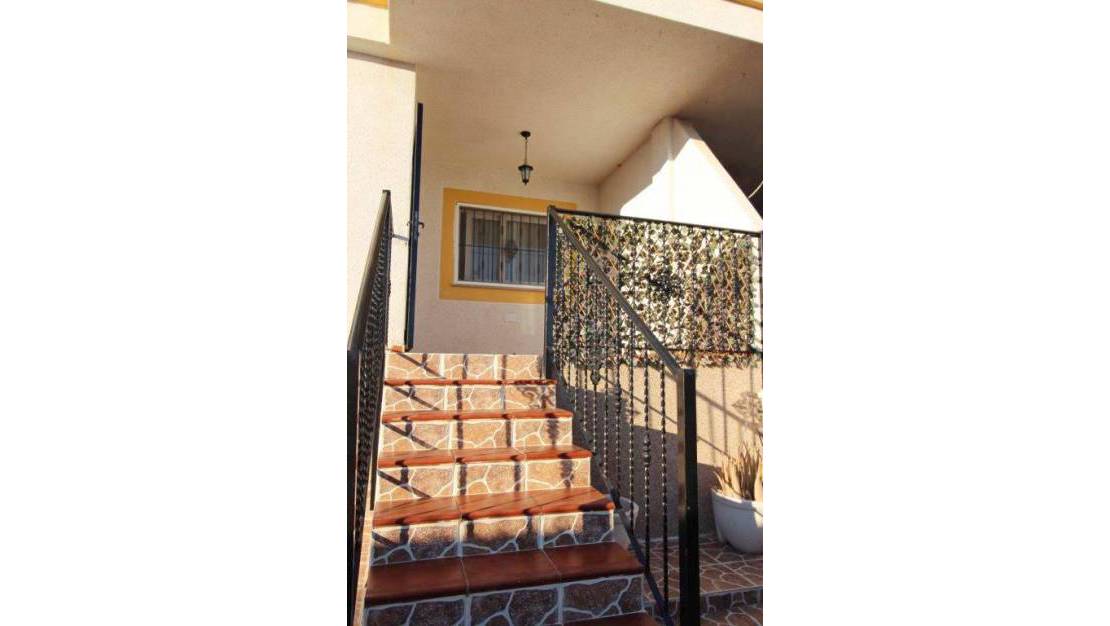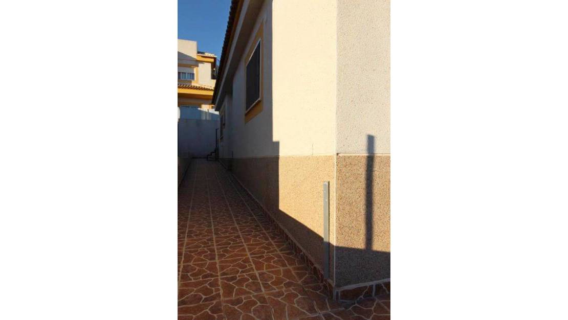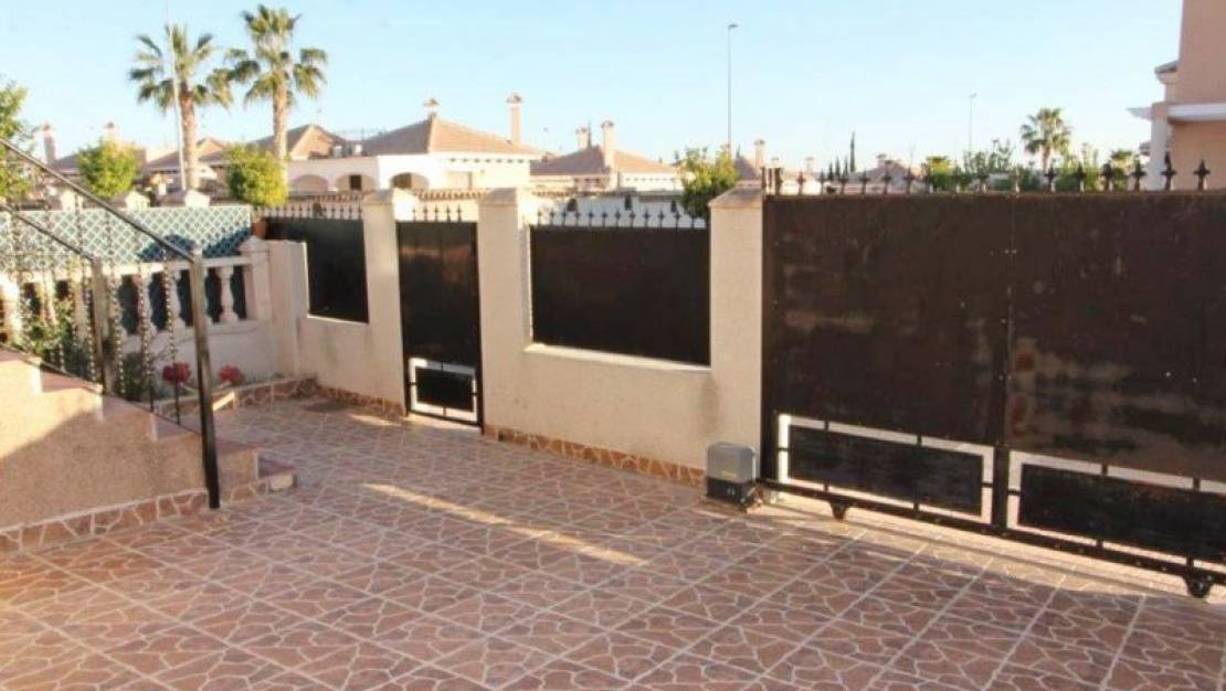 Bonito Chalet Adosado totalmente reformado con orientación SUR situado en Urbanización de San Fulgencio al lado de La Marina. La vivienda cuenta con 87m2 distribuidos en Una Sola Planta y consta de 3 dormitorios, 2 baños, salón-comedor y cocina independiente. Pequeño garaje/trastero con puerta mecánica. Solárium privado con Barbacoa en planta cubierta. Ampliación chapada de azulejos que puede ser utilizada como una segunda cocina o aprovechada para cualquier otro uso. Preinstalación de Aire Acondicionado por conductos. Rejas y mosquiteras en todas las ventana. Parcela de aproximadamente 200m2 con entrada para parking en la misma. Urbanización con Piscina Comunitaria y zonas de descanso. Ubicación muy tranquila y habitada durante todo el año rodeada de todos los servicios. SUMA 332 euros/año. COMUNIDAD 199 euros/Trimestre.