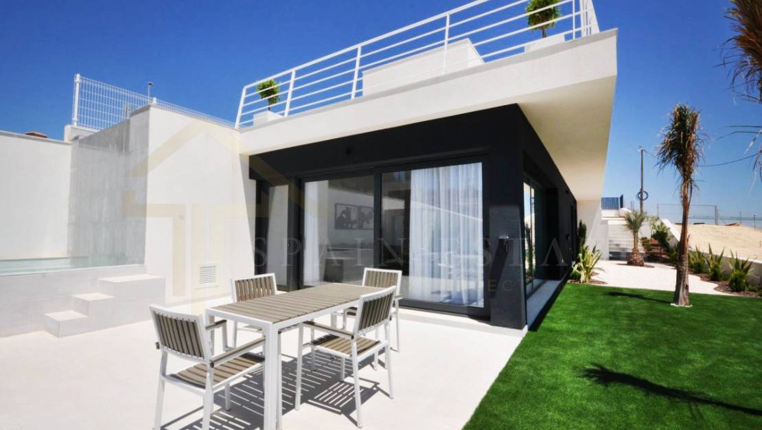 Villa en San Miguel de Salinas zona MIGUEL DE LAS SALINAS Alicante España, 200 m. de superficie, 225 m. superficie parcela, 2 habitaciones dobles y una habitación sencilla, 3 baños, propiedad nueva, cocina sólo muebles, orientación sureste.