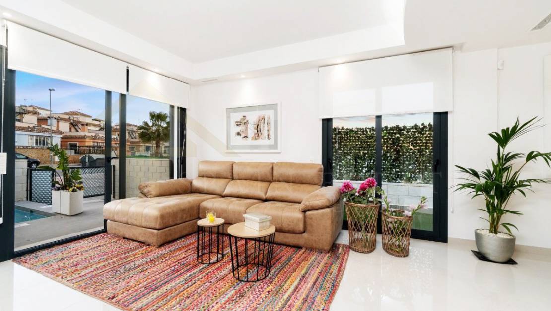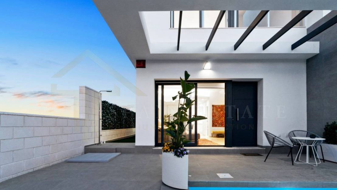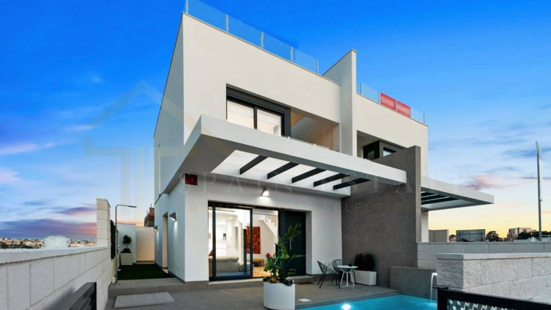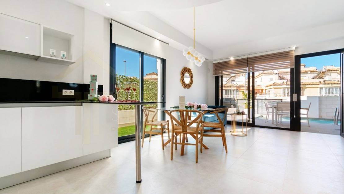 Villa en Villamartin zona Los almendros, 100 m. de superficie, 112 m. superficie parcela, 2 habitaciones dobles y una habitación sencilla, 2 baños, un aseo, propiedad en obra nueva, cocina sólo muebles, orientación sureste.