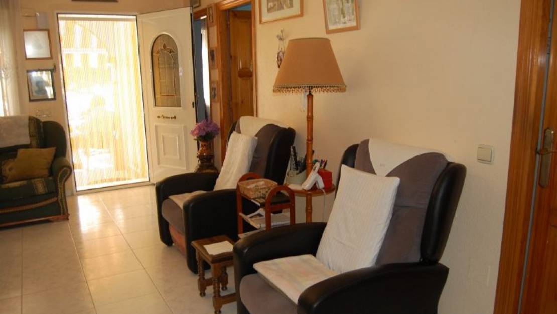 3 dormitorios, 1 baño, amplia cocina y un amplio salón con chimenea. El apartamento tiene aire acondicionado. El bungalow tiene un garaje privado y una gran terraza / solarium. El jardín está construido y tiene muchas plantas diferentes y un techo completo con uvas. El bungalow tiene una gran área al aire libre a ambos lados de la vivienda. En el frente tiene orientación norte. Hay una bonita zona de barbacoa con una chimenea. En la esquina de la casa al este y en la parte trasera de la terraza tiene orientación sur que le permite tener sol de este lado todo el día. La terraza de atrás está frente a la zona de la piscina. Hay 3 piscinas grandes y bonitas zonas verdes con limoneros y naranjos.