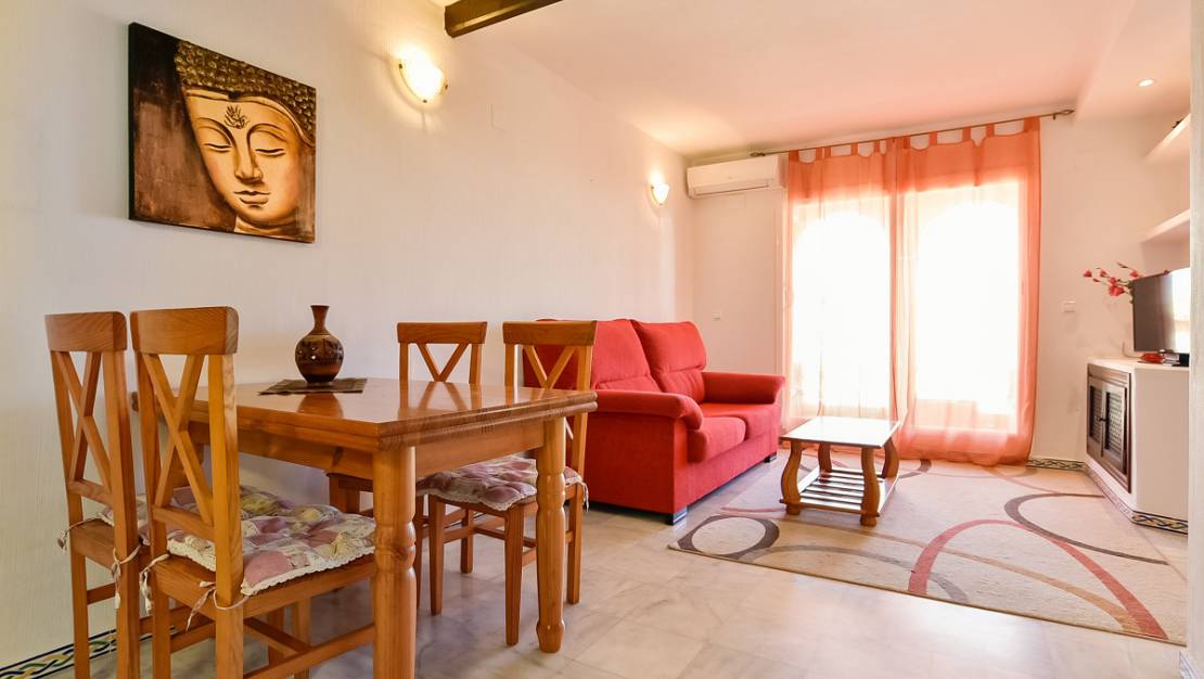 El apartamento tiene una superficie construida de 84 m² distribuidos en el salón, cocina amueblada y equipada con electrodomésticos, 2 habitaciones dobles, 2 baños y una bonita terraza.