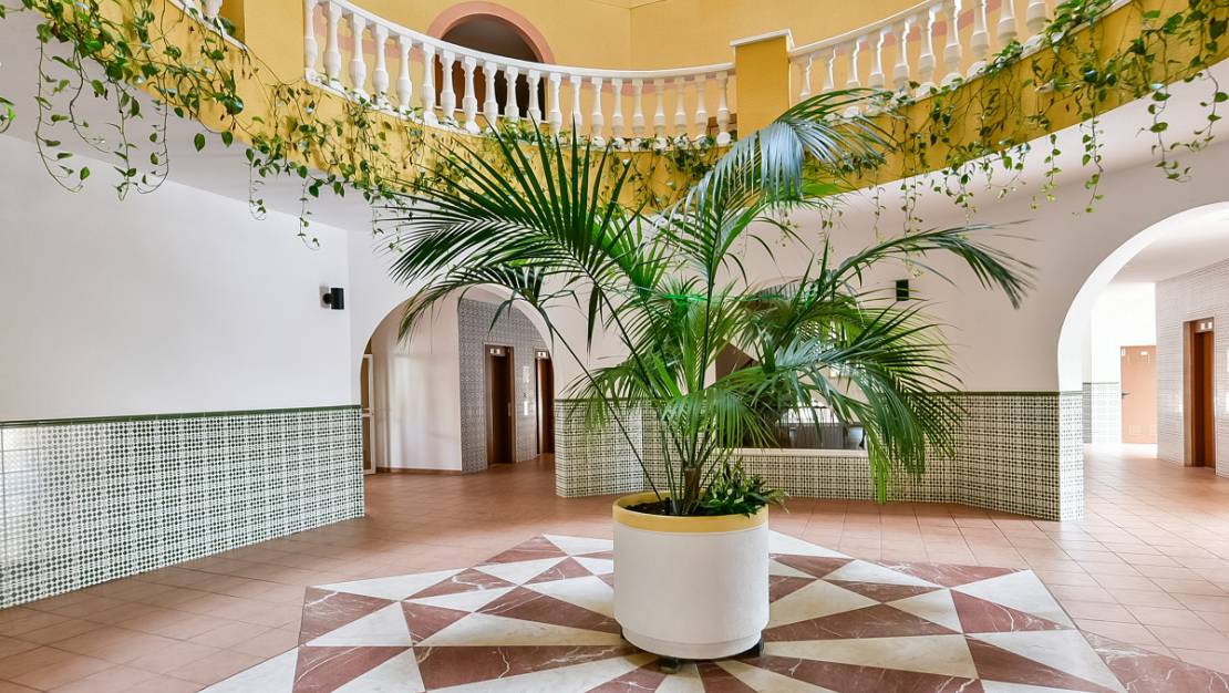 El apartamento está ubicado en el cuarto piso de un edificio residencial de lujo cerrado con una zona de ocio y piscina comunitaria. Este es un complejo conocido y prestigioso llamado Las Atalayas, justo en frente del distrito de Aldea del Mar.