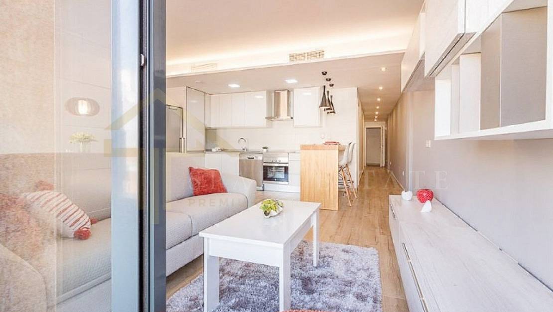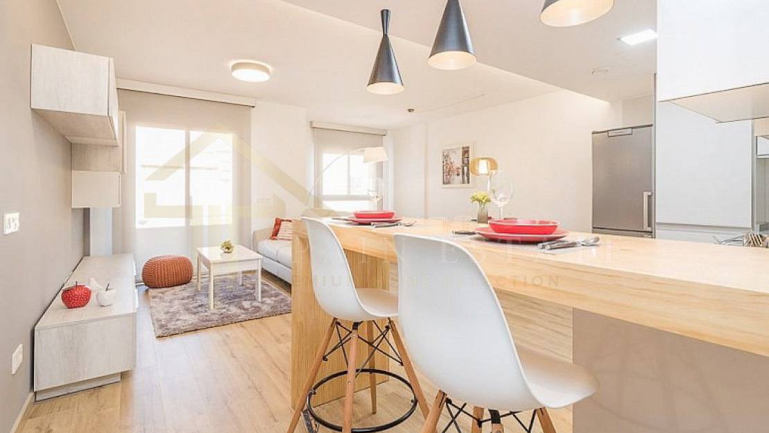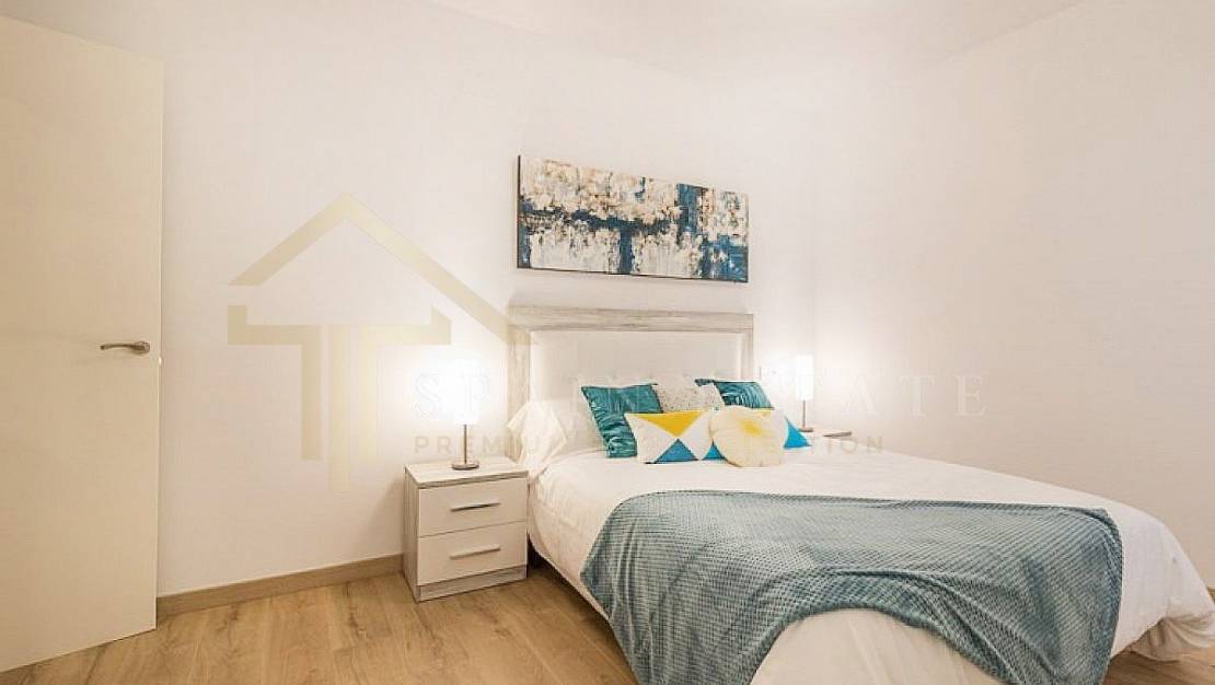 Un apartamento de nueva construcción en Torrevieja zona Centro, de 80m de superficie. Una vivienda de 2 habitaciones dobles con armarios empotrados, 2 baños, una cocina amueblada, la bancada de cuarzo compacto, la tarima de madera y amplio y luminoso.