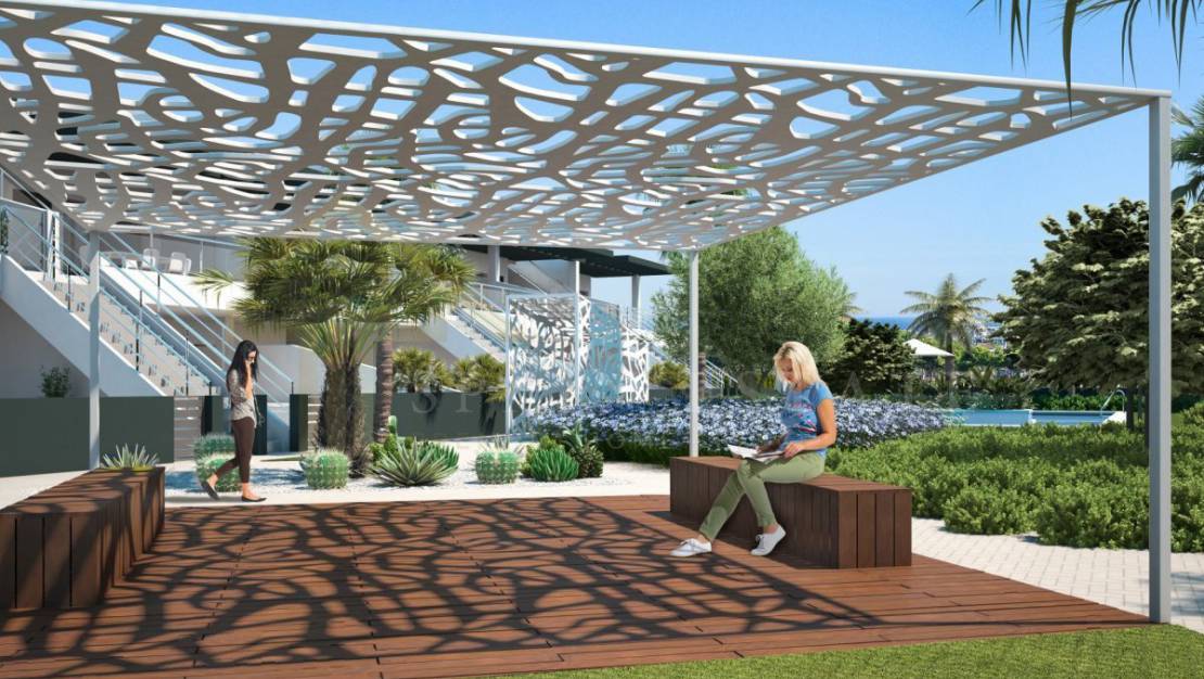 Extras: adaptado minus., agua, balcón, jardín, luminoso, luz, patio, piscina comunitaria, solárium, terraza, autobuses, árboles, céntrico, centros comerciales, colegios, costa, golf, supermercados, urbanización, vistas al mar, vistas despejadas, zona de paso, zonas infantiles, parking incluído