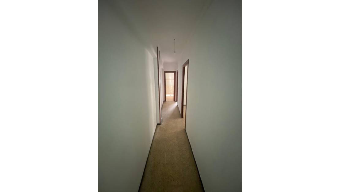 La puerta de acceso a la casa está blindada con cuatro puntos. Pavimento de terrazo en toda la vivienda excepto en zonas húmedas que es de gres porcelánico. La cocina independiente con galería y acristalada, actualizada con muebles altos y bajos actuales, y electrodomésticos; Cocina a gas, frigorífico, campana extractora y termo a gas de 50 litros, microondas. Paredes con pintura plástica. Instalación de A / A con bomba de calor de impulsión y retorno. Techos altos con moldura decorativa. Carpintería interior en puertas chapadas en roble, puertas de salón y cocina con vidriera. Baño principal equipado con; Lavabo blanco integrado en mueble sanitario, el inodoro es de porcelana vitrificada blanca y el plato de ducha es blanco y grifería monomando cromada. Alicatado de gres porcelánico en cocina y baños. Sin amueblar.