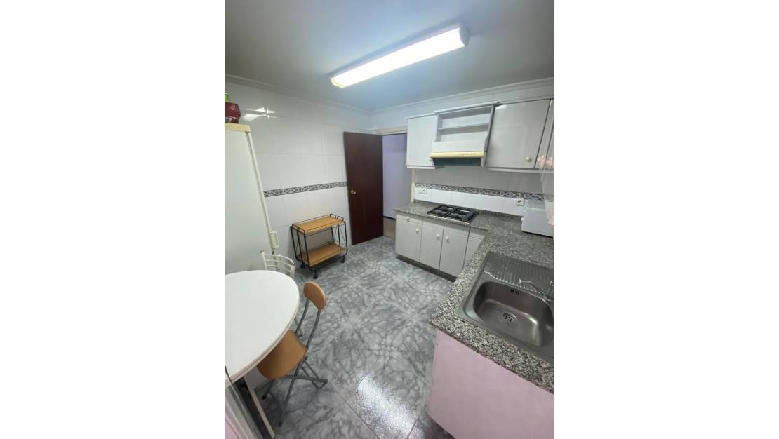 Vivienda en 1ª planta en edificio de 5 alturas sobre rasante. Dos pisos por piso. Tiene 90 metros construidos 82 metros exteriores útiles distribuidos en recibidor, amplio salón, cocina, tres habitaciones y un baño. Terraza. Galería.