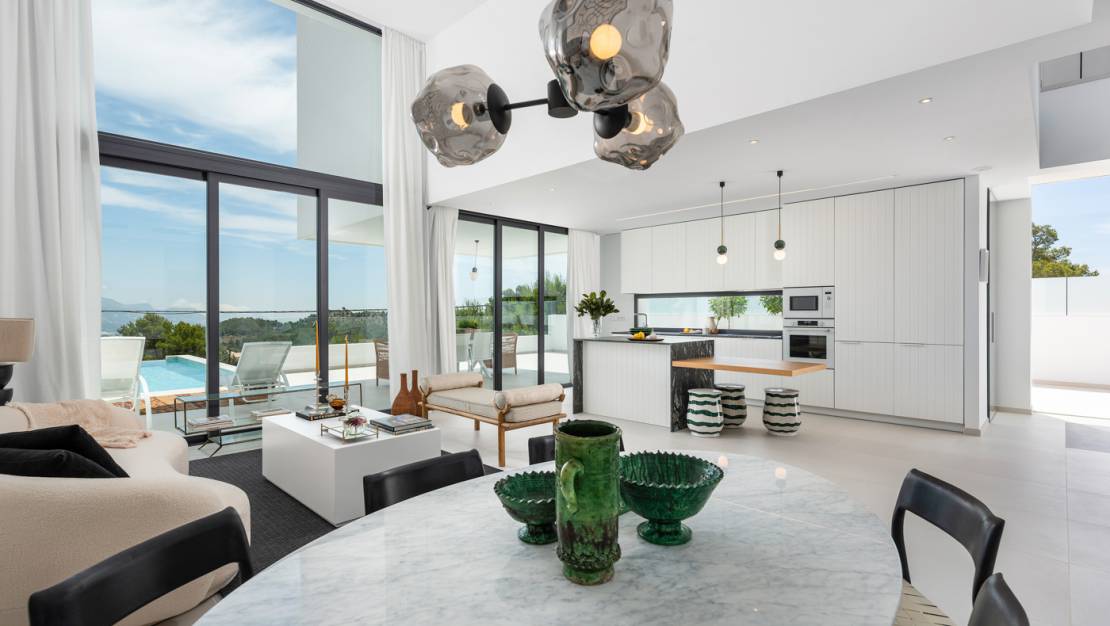El centro de la vivienda es, sin lugar a dudas, su impresionante cocina con isla, que se une con el salón y el comedor en un espacio de concepto abierto con acabados de lujo.