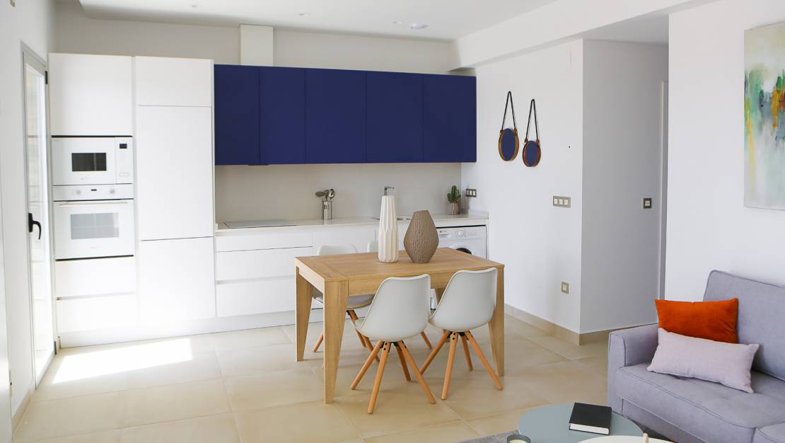 Las casas están ubicadas en grupos de cuatro. Dos de ellas en la planta baja con jardín privado y las otras dos en la planta superior, con un maravilloso solárium. Todos nuestros apartamentos disponen de parking privado, piscina comunitaria, zonas verdes y vistas al mar.