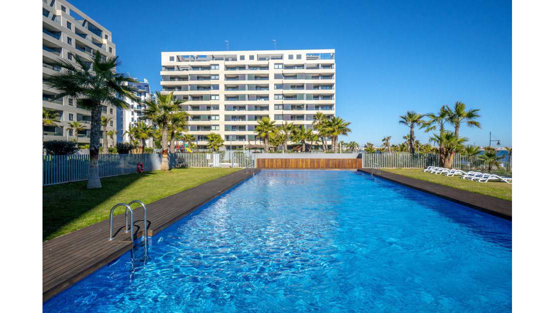 Apartamento ubicado en el exclusivo complejo Panorama Mar en Punta Prima, Torrevieja. El residencial consta de amplias zonas comunitarias, 3 piscinas comunitarias (1 infinita y 1 infantil), zona de juegos para niños, parking subterráneo, trastero y vigilancia privada 24h.
