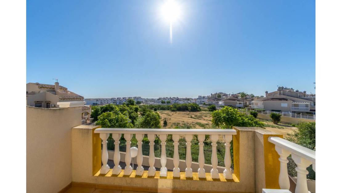 Soleado adosado en Los Altos, Orihuela Costa. La propiedad se divide en 2 plantas. En primera planta encontrará una pequeña terraza acristalada para disfrutar del sol gracias a su orientación sur-este. Dentro encontrará un amplio salón-comedor con mobiliario tradicional y en excelentes condiciones, también cuenta con un baño y una cocina independiente con una pequeña galería. En la primer planta se encuentra 2 habitaciones, una de ellas con terraza de 6 m2 con vistas a la ciudad y mar. También hay un baño completo y la escalera hacia el solarium de 21 m2 con vistas abiertas. También cuenta con plaza de parking exterior en la propiedad y piscina comunitaria.rnrnLos Altos está ubicado a escasos minutos de la prestigiosa urbanización de Punta Prima donde puede disfrutar de su playa de bandera azul, así como las playas de Playa Flamenca, La Zenia, Cabo Roig y Campoamor que se encuentran a escasos minutos en coche, es una zona con habitantes residentes todo el año por lo que dispone de todos los servicios. Próximo a los centros comerciales de Punta Marina y La Zenia Boulevard donde puede encontrar gran variedad de tiendas y restaurantes. También podrá disfrutar de una gran concentración de campos de golf en sus alrededores como el de Villamartín, Las Ramblas, Campoamor y Las Colinas, así como puertos y centros deportivos de Orihuela Costa y Torrevieja. A través de la nacional 332 o la autopista AP-7, podemos llegar fácilmente a cualquier lugar de la Costa Blanca. Disponemos del Hospital de Torrevieja en apenas tres kilómetros y en 30 minutos se puede llegar a los aeropuertos de Alicante o Murcia.
