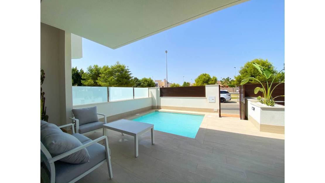 San Pedro del Pinatar posee gran atractivo turístico y ecológico donde al norte del municipio se encuentra el parque natural de las Salinas y Arenales de San Pedro del Pinatar, playas de bandera azul que ofrecen una gran selección de deportes acuáticos. Para los entusiasmados deportistas se pueden elegir entre 5 campos de golf, a 5 minutos del campo de fútbol, gimnasio, pistas de tenis y el cricket. Están cerca de todos los servicios y una buena selección de bares, restaurantes y tiendas. En sus cercanías tiene a importantes núcleos urbanos tales como Torrevieja, Murcia y Cartagena. Conecta fácilmente con la carretera nacional N-332 y la autovía del mediterráneo AP-7.rnrnVilla semi-adosada con parcela de 178m2 y piscina privada. La propiedad cuenta con amplio salón-comedor y una cocina de estilo americana con isla. En planta baja también encontraremos 1 dormitorio, 1 baño, lavandería y patio interior. La planta alta se conforma por 2 dormitorios y 2 baños (1 de ellos en suite) y una terraza de 7m2. La propiedad cuenta con garaje e incluye cocina totalmente amueblada con electrodomésticos y pre-instalación de aire acondicionado por conductos. Opción de agregar 1 dormitorio más.n