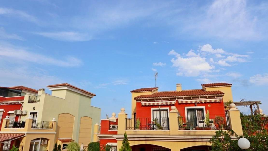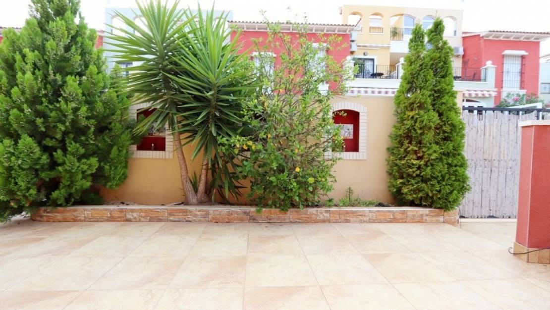 Bonito adosado de dos plantas con 3 dormitorios y 2 baños situado en conocido residencial Altos de la Bahia. Con jardín de esquina de unos 50 m2 con la entrada para el coche. La vivienda tiene superficie de 82 m2 y su distribución es siguiente: En la planta baja están el salón, la cocina americana con salida al lavadero, un dormitorio y un baño. En primera planta hay dos dormitorios y un baño, grande terraza. Todos los dormitorios tienen armarios empotrados, en cada estancia instalado aire acondicionado. La vivienda se vende totalmente amueblada y con electrodomésticos. Residencial privado con piscina comunitaria. Cerca de todos los servicios y a 1,5 km de la playa. Ideal para vivir todo el año o por vacaciones. Orientación oeste.
