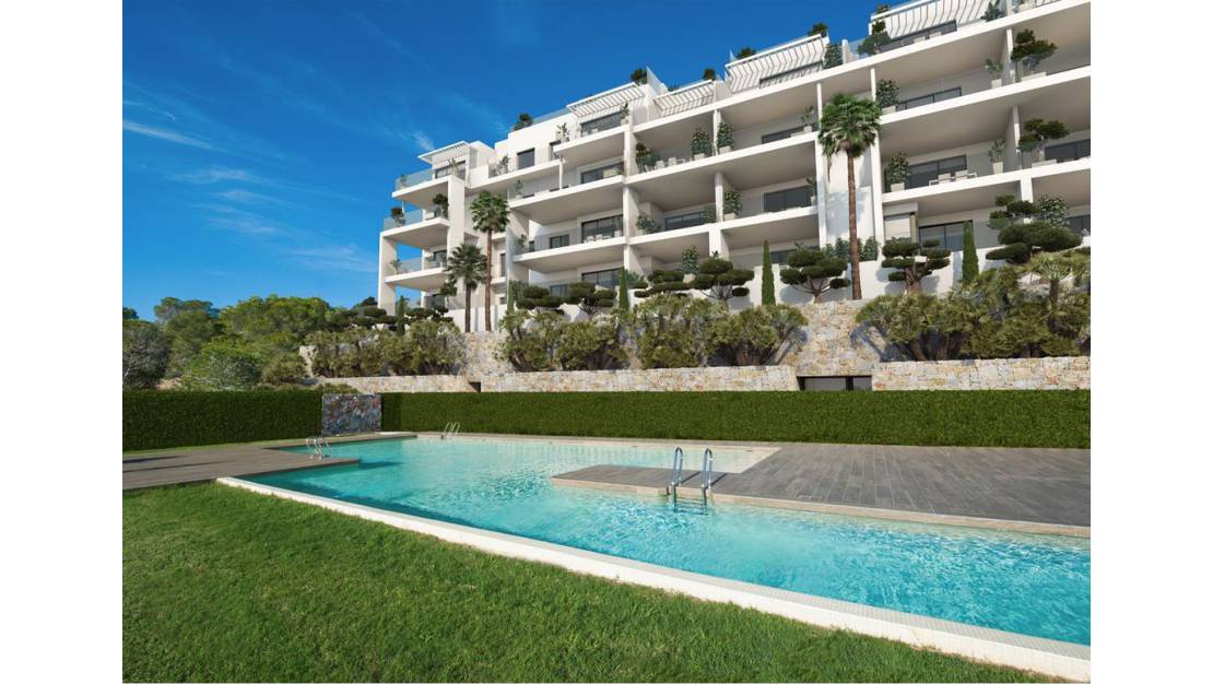 Precioso apartamento de obra nueva en Las Colinas, Orihuela Costa. La vivienda consta de 2 dormitorios y 2 baños (uno de ellos en suite). También cuenta con cocina abierta, amplio salón-comedor, terraza de 26 m2 con vistas panorámicas al campo de golf. El residencial está compuesto por 32 apartamentos, cuenta con piscina comunitaria, parking y zonas ajardinadas.rnrnLas Colinas Golf es una urbanización privada situada en una zona privilegiada de la Costa Blanca. Cerca de Las Colinas se encuentran las populares playas de Orihuela Costa incluyendo Cabo Roig y Campoamor playas entre otros. Estos lugares son muy populares para las actividades de navegación y cuentan con una gran cantidad de zonas verdes y la vegetación local, Las Colinas goza de un clima excepcional y está situado muy cerca de todas los servicios. Las Colinas Golf ofrece una amplia variedad de instalaciones deportivas que incluye pistas de tenis y pádel y también hay un gimnasio totalmente equipado. El gimnasio está situado junto a la Casa Club, rodeado de un campo de golf de 18 hoyos y un paisaje natural para aquellos que disfrutan de caminar.